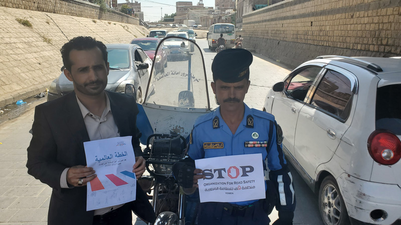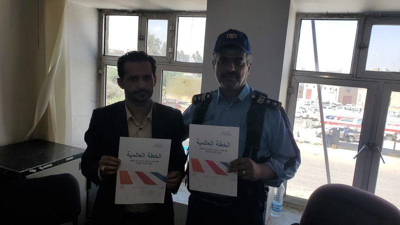The head of the STOP Organization for Road Safety, Muhammad Abdul-Moumen Al-Shami, accompanied by the Secretary-General of the organization, Amin Al-Juhaifi, handed the Global Plan for the Decade of Action for Road Safety 2021-2030 to the Director General of Traffic Police and to the Ministry of Interior Affairs in yemen